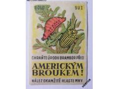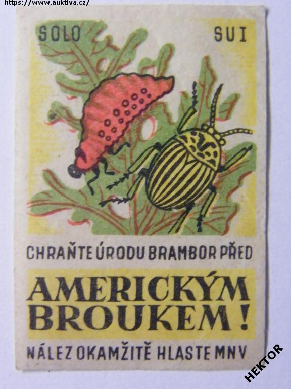 1 nálepka „CHRAŇTE ÚRODU BRAMBOR PŘED AMERICKÝM BROUKEM“. Nová, nepoužitá. Cena je za 1 kus.