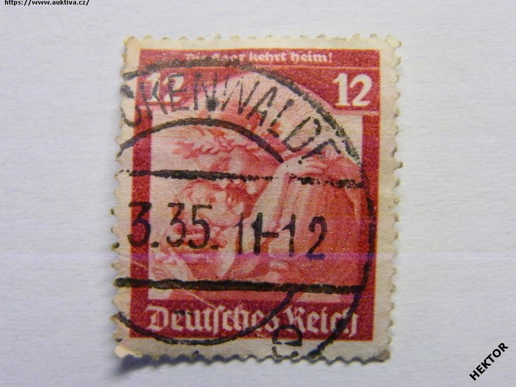 1 známka Německo - Deutlches Reich - v hodnotě 12 Pfennig - byla nalepená, přetištěná s částečným datumem odeslání xx. 3. 35. Použitá. Cena je za 1 kus.