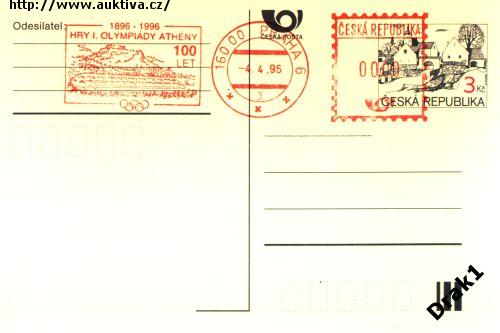 100 let od první Olympiády v Athénách,příležitostný výplatní otisk Praha 6 1996 na CDV
