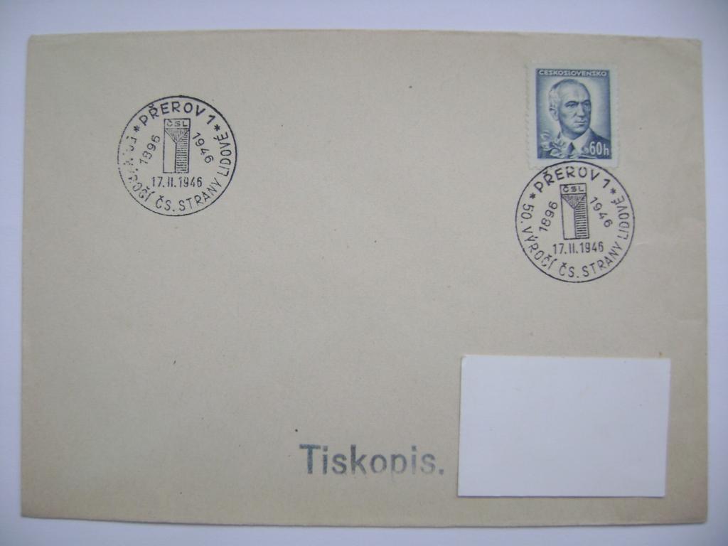 17.II.1946 Přerov 50. výročí Čs. strany lidové pamětní raz.