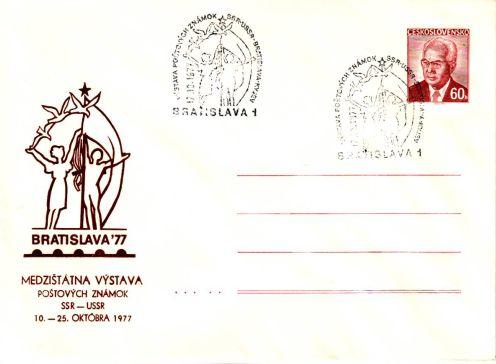 1977 Bratislava Medzištátna Výstava poštových známok SSR-USSR, COB 1977/2 příležitostné razítko Bratislava 1