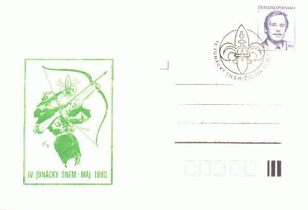 1990 Žilina IV.Junácký snem, lukostřelec, COB C 1990/73-2 příležitostné razítko Žilina 1