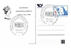 1996 Praha 1 Královna Alžběta v Praze, příležitostné razítko na CDV Viktorka s přítiskem
