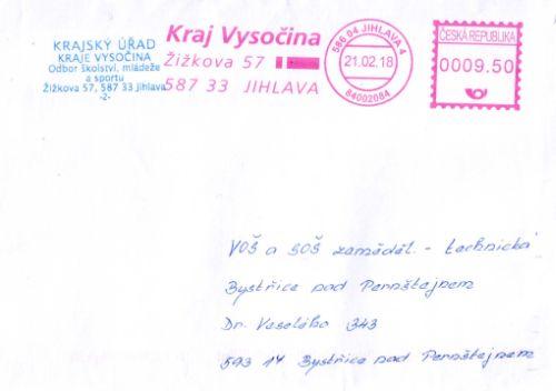 2018 Jihlava Výplatní otisk Kraj Vysočina Žižkova 57 Jihlava