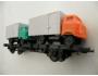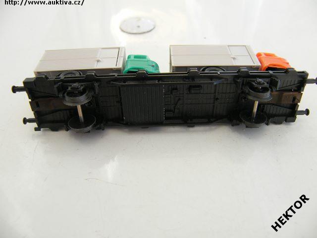 Model 2osého plošinového vozu typu Sm, DR, karosérie a spodek vozu stříkaný černou, bez klanic, se 2 nákladními skříňovými auty IFA, podlaha bez 8 kolíčků pro zajištění kontejnérů, bez loga a popisů, brzdová soustava součástí spodku vozu. Výrobcem Zeuke nebo BTTB začátkem 70. let, pro kat. č. 4541. Výměnná spřáhla a umělohmotná dvojkolí. Po zakoupení z druhé ruky byl model odložen a neježděn, je dlouho neježděn. Bez originální krabičky.