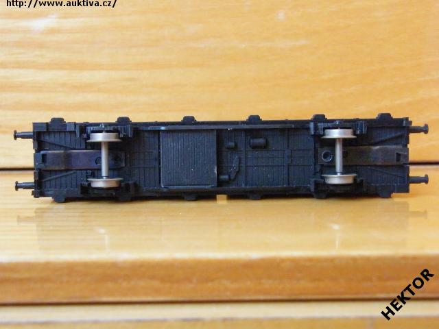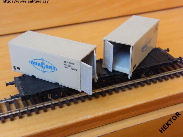Sběratelský model 2osého plošinového vozu typu Sm, DR, ložený 2 šedými kontejnéry DDR CONT, karosérie a spodek vozu stříkaný černou, bez loga a popisů, podlaha s 8 kolíčky pro uchycení kontejnérů, brzdová soustava součástí spodku vozu. Bez klanic. Výrobcem BTTB koncem 80. let, kat. č. 14520. Výměnná spřáhla a kovová dvojkolí. Po zakoupení byl model odložen do vitríny a neježděn, je dlouho neježděn. Bez originální krabičky.