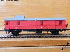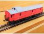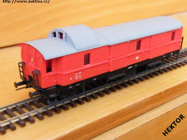 Sběratelský model 2osého služebního vozu s jednou zavřenou nástupní plošinou typu Pwg - 30, DR, epocha III, karosérie stříkaná červenou a rám barvený černou, na boku JIŽ NEJSOU PROUŽKY, logo DR tištěné bílou uprostřed pod okny na červeném podkladu, číslo vozu 742 - 009 a popisy tištěny bílou vlevo pod okny na červeném podkladu a na černém rámu, bez směrové cedule, střecha s nezaslenou nástavbou je samostatný výlisek barvený ve hmotě světlejší šedou, NA ČELECH JIŽ NEJSOU KOVOVÉ ŽEBŘÍKY, kovové černé lávky po celé délce vozu, rámy oken nahoře hranaté, v oknech plochý plast, okna ve vstupnách dveřích nezasklena, spodek vozu umělohmotný s naznačenou příhradovou konstrukcí černý zaklapávací bez otvorů pro doplňky, brzdová soustava součástí spodku vozu. Výrobcem BTTB koncem 70. let, kat. č. 3411. Výměnná spřáhla typu BTTB černá a umělohmotná dvojkolí. Po zakoupení byl model odložen do vitríny a neježděn, je dlouho neježděn. Bez originální krabičky.