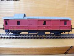 Sběratelský model 2osého služebního vozu s jednou zavřenou nástupní plošinou typu Pwg - 30, DR, epocha III, karosérie barvená ve hmotě tmavší červenou a rám barvený černou, na boku 2 žluté vodoruvné proužky, logo DR tištěné žlutou uprostřed pod okny na tmavším červeném podkladu, číslo vozu 742 - 009 a popisy tištěny žlutou vlevo pod okny na tmavším červeném podkladu a na černém rámu, bez směrové cedule, střecha s nezaslenou nástavbou je samostatný výlisek barvený ve hmotě světlejší šedou, na každém čele jsou 2 kovové černé žebříky, kovové černé lávky po celé délce vozu, rámy oken nahoře hranaté, v oknech plochý plast, okna ve vstupnách dveřích nezasklena, spodek vozu umělohmotný příhradový černý zaklapávací, brzdová soustava vkládaná šedá - chybí. Výrobcem Zeuke koncem 60. let, kat. č. 545/83/2. Výměnná spřáhla a umělohmotná dvojkolí. Po zakoupení byl model odložen a pouze občas ježděn. Bez originální krabičky. Bez vkládaných brzdových zdrží, chybí 2 nárazníky, pokřívaná kovová lávka.