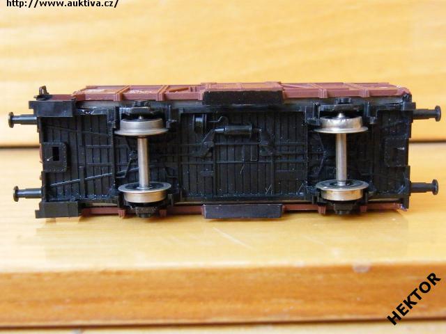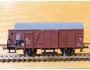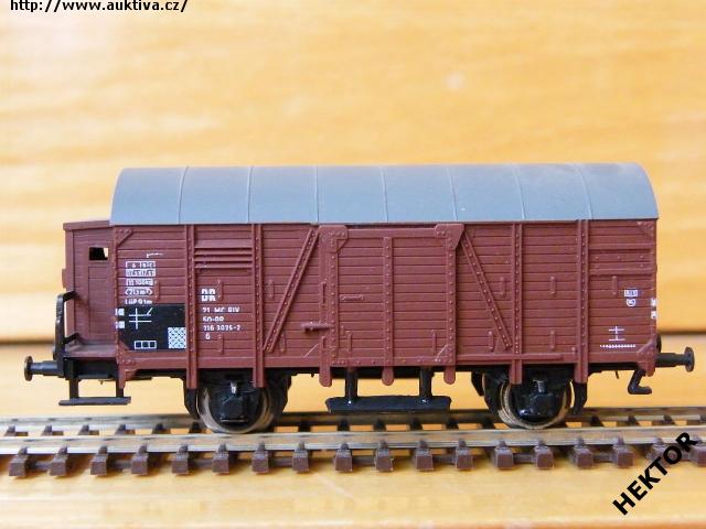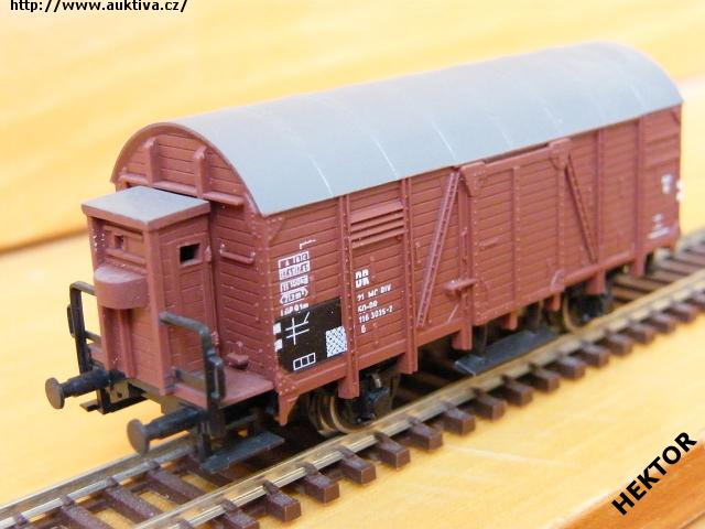 RARITA!!! Sběratelský model 2osého zavřeného vozu s brzdařskou budkou typu Kassel G 04, DR, karosérie dřevěná stříkaná hnědočervenou, brzdařská budka stříkaná hnědočervenou vč. podlahy, zábradlí černé, stupačka pod dveřmi černá, kulatá střecha součástí karosérie stříkaná tmavší šedou napříč pertlovaná, střecha brzdařské budky stříkaná tmavší šedou, logo DR tištěné bílou na hnědočerveném podkladu, číslo vozu 21 50 116 3 025 - 2 tištěné bílou - IV. epocha na hnědočerveném podkladu, popisy tištěné bílou na hnědočerveném podkladu, vlevo dole černý obdélníček s bílými linkami, přechodky tištěné bílé na černém podkladu, spodek vozu černý lepený, brzdová soustava součástí spodku vozu. Výrobcem BTTB koncem 80. let, kat. č. 14120. Výměnná spřáhla a kovová dvojkolí. Po zakoupení byl model odložen do vitríny a neježděn, je dlouho neježděn. V originální krabičce BTTB.