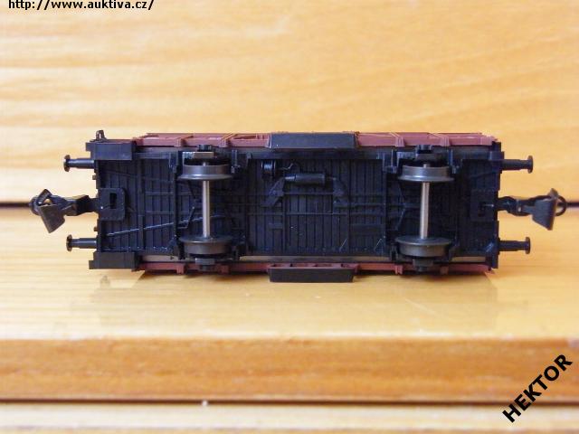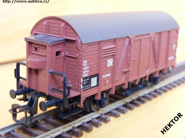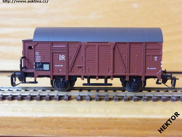 RARITA!!! Sběratelský model 2osého zavřeného vozu s brzdařskou budkou typu Kassel G 04, DR, epocha III, karosérie dřevěná stříkaná hnědočervenou, brzdařská budka stříkaná hnědočervenou vč. podlahy, zábradlí černé, stupačka pod dveřmi černá, kulatá střecha součástí karosérie stříkaná tmavší šedou napříč pertlovaná, střecha brzdařské budky stříkaná tmavší šedou, logo DR tištěné bílou na hnědočerveném podkladu, číslo vozu 04 - 60 - 80 tištěné bílou - IV. epocha na hnědočerveném podkladu, popisy tištěné bílou na hnědočerveném podkladu, vlevo dole černý obdélníček s bílými linkami, přechodky tištěné bílé na černém podkladu, spodek vozu černý lepený, brzdová soustava součástí spodku vozu. Výrobcem Tillig v letech 1999 - 2004, kat. č. 14129. Výměnná spřáhla a kovová dvojkolí černěná. Po zakoupení byl model odložen do vitríny a neježděn, je dlouho neježděn. V originální krabičce.