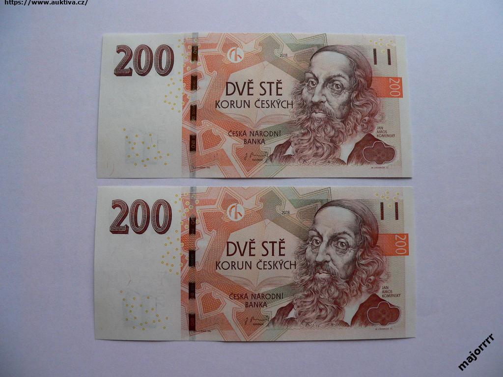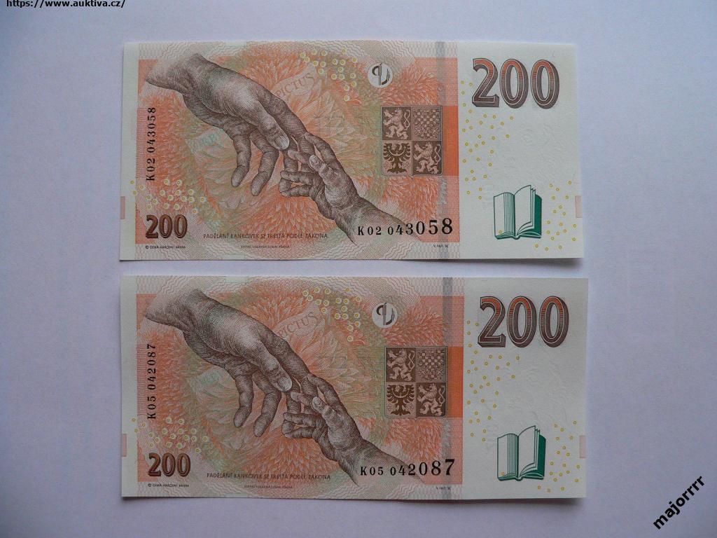 2x ČR 200 Kč r.2018 serie K02 + K05, UNC neperforované