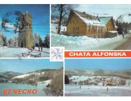 Barevná pohlednice popsaná, otřelé rožky, lomy,