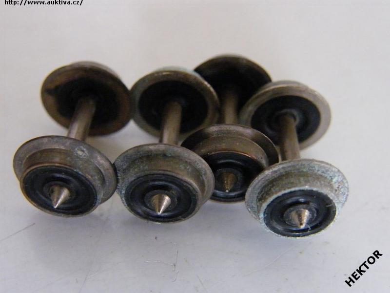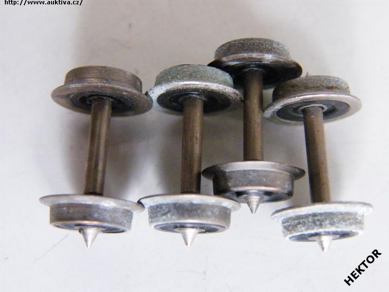 4 dvojkolí vagonová s kovovým nákolkem černěná, průměr 8,0 mm - TT. Dvojkolí byla uložena v suchu, ale přesto zoxidovala. V balíčku 4 kusy. Nové nepoužité. Cena je za 1 balíček.
