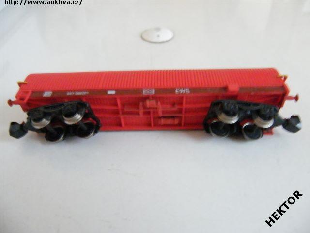 RARITA!!! Sběratelský malosériový 4osý model plošinového vozu BAY, EWS, stříkaný hnědočervenou a roleta červená, logo a popisy tištěny bílou, 2osé podvozky typu "Y" černé, brzdová soustava součástí podvozku. Výrobcem Miho v 90. letech a distribuci zajišťoval Es Pečky. Spřáhla LPH lepená na podvozek a kovová dvojkolí – Malá železnice. Po zakoupení byl model odložen do vitríny a neježděn, je dlouho neježděn. Bez originální krabičky.