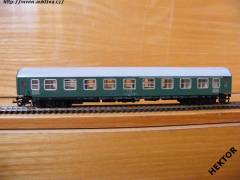 Sběratelský model 4osého rychlíkového vozu typu Y provedení ABa, ČSD, 1. a 2. třída, epocha IV, karosérie stříkaná zelenou a na rámu černou, čela stříkaná zelenou, logo ČSD tištěné bílou uprostřed pod okny na zeleném podkladu, číslo vozu a popisy tištěny bílou na zeleném podkladu a na černém podkladu na rámu, čísla třídy tištěna bílou mezi okny na zeleném podkladu, nad okny je bílý pruh označující 1. třídu, na obou krajích jsou pod okny bílé obdélníčky naznačující směrové cedule, střecha stříkaná světlou šedou, v oknech propracovaný plastový výlisek a rámy obtažené stříbrnou, spodek vozu umělohmotný černý zaklapávací, 2osé podvozky kovové s lepenými maskami, brzdová soustava vkládaná do podvozku černá. Výrobcem Zeuke koncem 60. let, kat. č. 545/85. Pevná spřáhla typu Zeuke černá a umělohmotná - kovová dvojkolí pro odběr proudu pro osvětlení. Po zakoupení byl model odložen do vitríny a pouze občas ježděn, je dlouho neježděn. Bez originální krabičky.