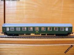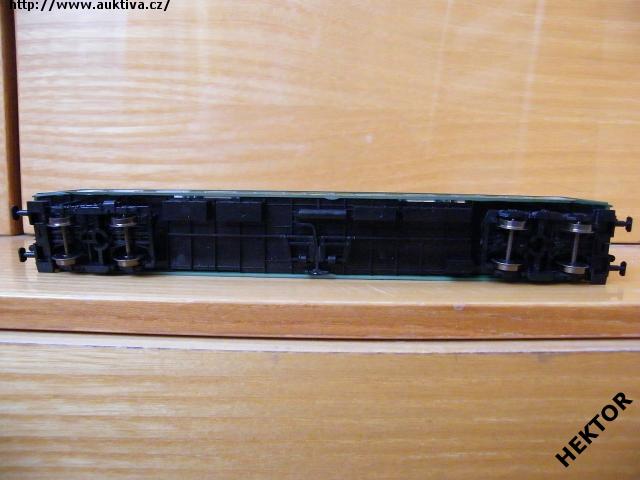 Sběratelský model 4osého rychlíkového vozu typu Y provedení Am, ČSD, 1. třída, epocha IV, karosérie stříkaná tmavou zelenou i na rámu, čela stříkaná tmavou zelenou, logo ČSD tištěné žlutou uprostřed pod okny na tmavém zeleném podkladu, číslo vozu a popisy tištěny žlutou na tmavém zeleném podkladu i na rámu, čísla třídy tištěna žlutou mezi okny na tmavém zeleném podkladu, nad okny je žlutý pruh označující 1. třídu, bez směrové cedule, střecha stříkaná světlou šedou, v oknech propracovaný plastový výlisek a rámy obtažené stříbrnou, spodek vozu umělohmotný černý zaklapávací, 2osé podvozky umělohmotné černé, brzdová soustava součástí podvozku. Výrobcem Tillig po roce 2000, kat. č. 13648. Výměnná spřáhla typu BTTB černá a kovová dvojkolí černěná pro odběr proudu pro osvětlení. Po zakoupení byl model odložen do vitríny a neježděn, je dlouho neježděn. V originální krabičce.