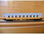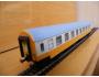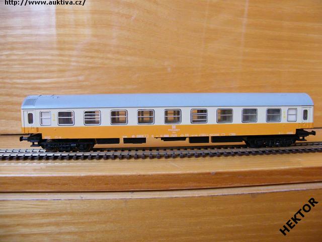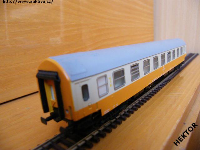 Sběratelský model 4osého rychlíkového vozu typu Y provedení Ame, DR, 1. třída, epocha IV, karosérie stříkaná v úrovni oken krémovou a pod okny oranžovou i na rámu, čela stříkaná celá oranžovou, logo DR tištěné bílou uprostřed pod okny na oranžovém podkladu, číslo vozu a popisy tištěny bílou na oranžovém podkladu i na rámu, nad 1. třídou NENÍ pruh, čísla třídy tištěna oranžovou mezi okny na krémovém podkladu, bez směrové cedule, střecha stříkaná světlou šedou, v oknech propracovaný plastový výlisek a rámy obtažené stříbrnou, spodek vozu umělohmotný černý zaklapávací, 2osé podvozky umělohmotné černé, brzdová soustava součástí podvozku. Výrobcem BTTB v 80. letech, kat. č. 03615. Výměnná spřáhla typu BTTB černá a umělohmotná - kovová dvojkolí pro odběr proudu pro osvětlení - osazeno vnitřní osvětlení. Po zakoupení byl model odložen do vitríny a pouze občas ježděn, je dlouho neježděn. Bez originální krabičky.