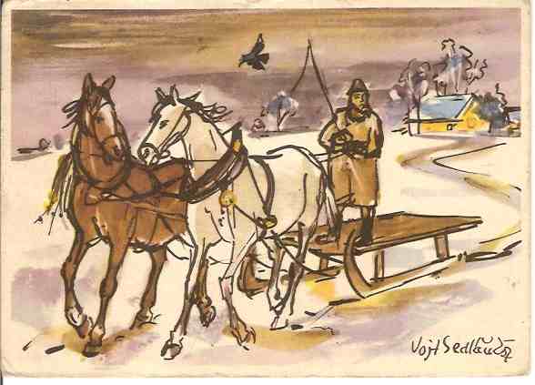 KŮŇ / KONĚ / POVOZ/mal.Sedláček /r1960?*af1