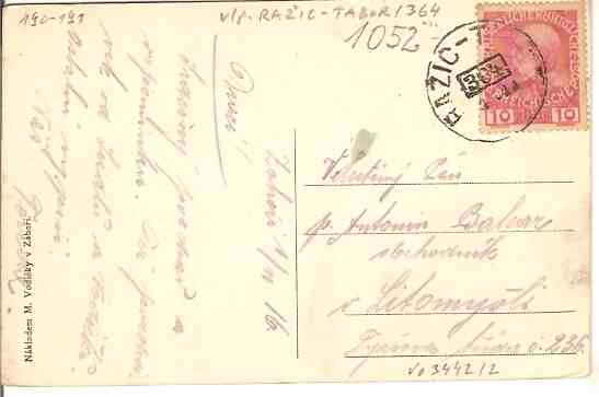 VLAK.POŠTA/RAČIC-TÁBOR/HORNÍ ZÁHOŘÍ/r1916?*FE190