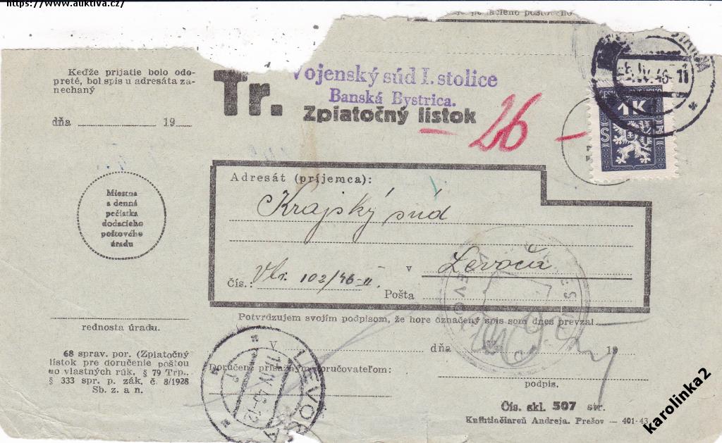 BANSKÁ BYSTRICA=LEVOČA=ZPATEČNÍ LÍSTEK=rok1946=c13345