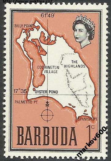 V rokoch 1971-73 platili známky Antiguy, ktoré boli v roku 1973 pretlačené textom BARBUDA. Od roku 1975 definitívne známky.