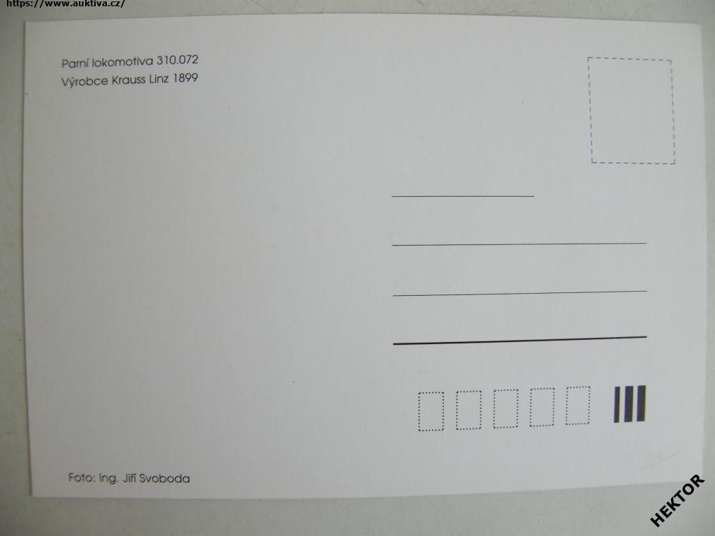 Barevná pohlednice parní lokomotivy 310.072. Nová nepoužitá. Cena je za 1 kus.