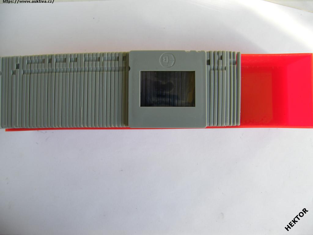 Barevné diapozitivy - neznámé - 66 rámečků vč. velké krabičky. Málo používané. Cena je za celou krabičku.