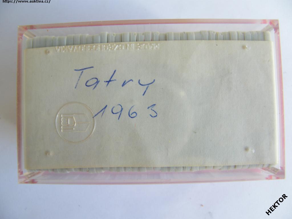 Barevné diapozitivy - Vysoké Tatry, z roku 1963 - 35 rámečků vč. malé krabičky. Málo používané. Cena je za celou krabičku.