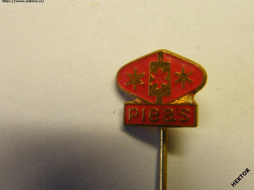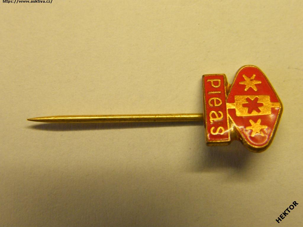 Barevný odznak „Pleas“, červený. Nový, nepoužitý. Cena je za 1 kus.