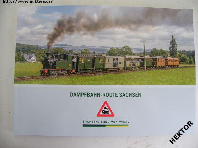 Barevný prospekt lepený Německý – DAMPFBAHN – ROUTE SACHSEN – německy. Nový nepoužitý. Cena je za 1 kus.