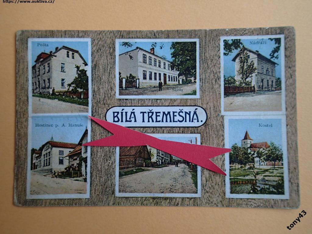 BÍLÁ TŘEMEŠNÁ - pošta škola nádraží hostinec kostel vyd 1917