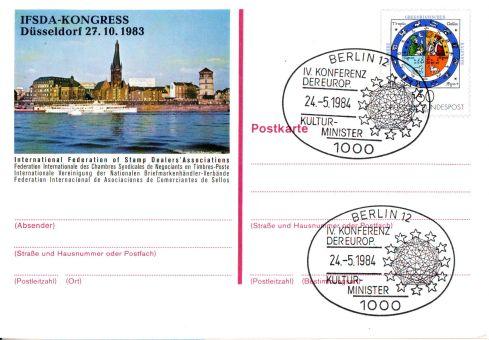 BRD 1983 400.výročí Gregoriánského kalendáře, Düsseldorf, kongres obchodníků se známkami, příležitostné razítko 1984 Berlin 12 Konference evroských ministů kultury, na obrazové dopisnici Michel č. PSo9