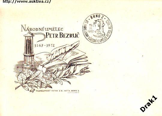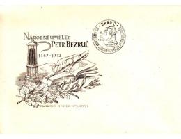 Brno 2 85.narozeniny Petra Bezruče, příležitostné razítko na ilustrované obálce nefrankované