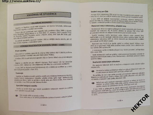 Sešitá brožura "Vagonářské muzeum ve Studénce - průvodce po expozici", vydalo Vagonářské muzeum ve Studénce v roce 2012 - 3. doplněné vydání. Nová nepoužívaná. Cena je za 1 kus.