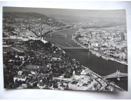 BUDAPEST - celkový pohled, Dunaj, mosty, 60. léta