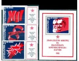 Bulharsko 1981 Sjezd komunistů, Michel č.2971-3+kup+Bl.110 **