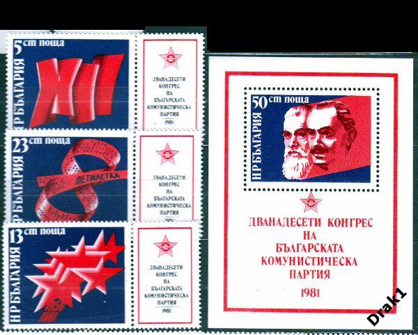 Bulharsko 1981 Sjezd komunistů, Michel č.2971-3+kup+Bl.110 *