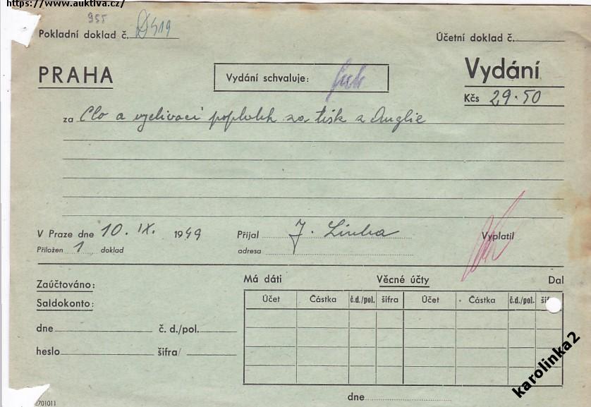 CELNÍ KVITANCE+DOPLATIT=ZAJÍMAVÉ=rok1949*P955