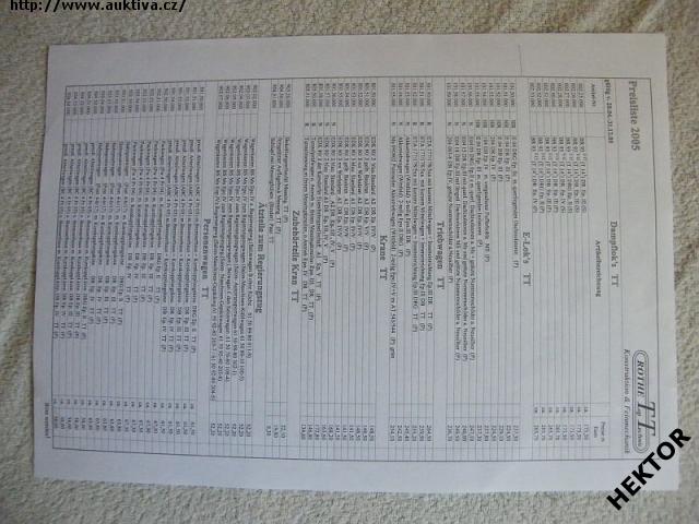 Velký černobílý ceník oboustranný 2005 firmy „ROTHE Top Technic“ velikostí TT, HO a N od 20. 4. do 31. 12. 2005 – 1 list modelů a příslušenství. Nový nepoužívaný. Cena je za 1 kus.