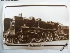 Německý kreslený černobílý obrázek historické saské lokomotivy z historického setu – velikosti 147 x 105 mm. Již byl použitý. Cena je za 1 kus.