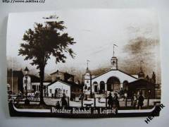 Německý kreslený černobílý obrázek Drážďanského nádraží v Lipsku z historického setu – velikosti 147 x 105 mm. Již byl použitý. Cena je za 1 kus.