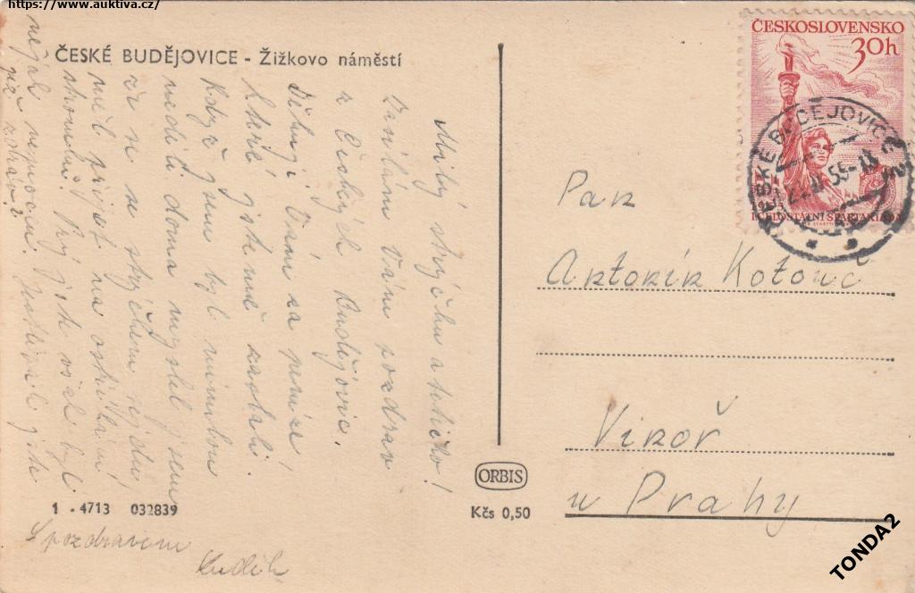 ČESKÉ BUDĚJOVICE ŽIŽKOVO NÁM. ORBIS Kčs 0.50 °HF399