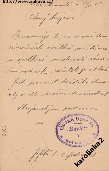 COLN=VZADU POZVÁNKA KRAJANŮ=RARITA =POSTKARTE /rok1915*c5053