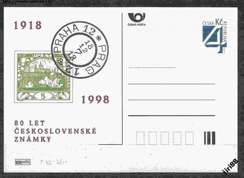 ČR **Pof.Postfila P42 80 let čs. známky