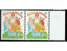 ČR 2002 Mikuláš, Pofis č.336 desková vada DV17/2 zelená skvrna nahoře na nůši 2-páska **