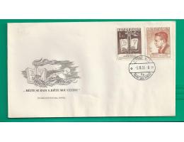 Obálka prvního dne, neprošlá, na rubu stopy po přilepení lepenkou