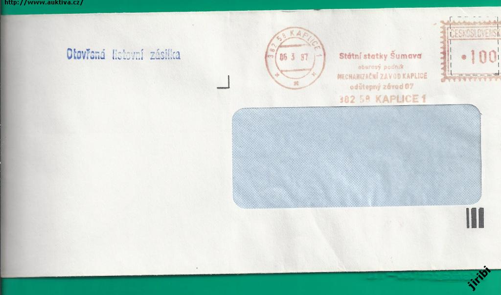ČS frankotyp Státní Statky ŠUMAVA, MZ Kaplice 6-3-87