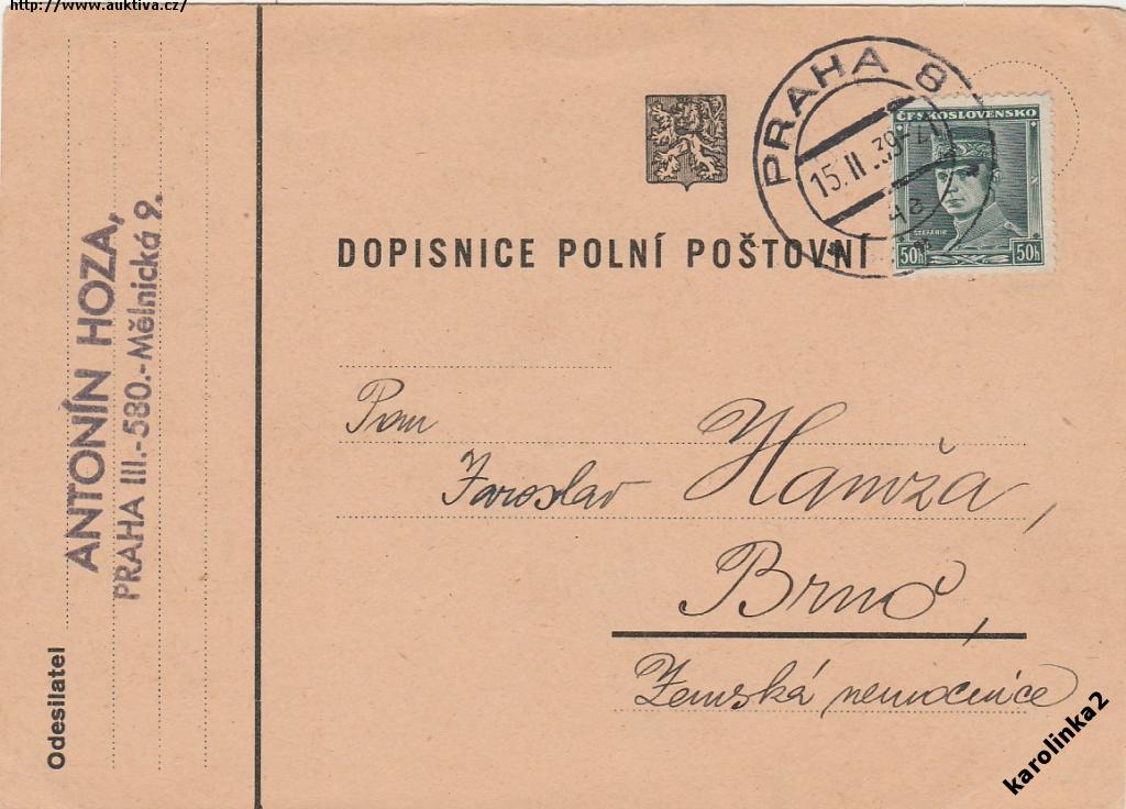 ČS.POLNÍ POŠTA= DOPISNICE POUŽITA SOUKROMĚ ! /rok1939*c5324