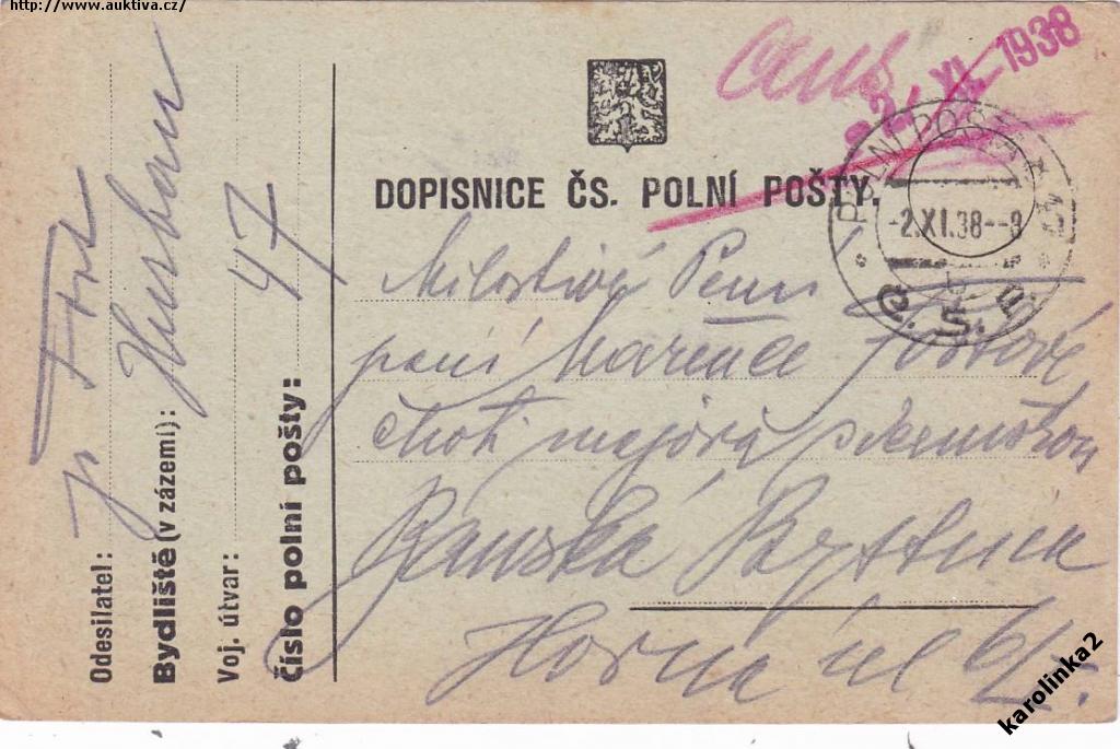 ČS.POLNÍ POŠTA =rok1938*c7042
