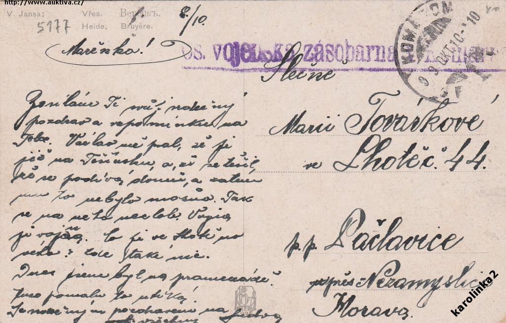 ČS.POLNÍ POŠTA =VOJENSKÁ ZASOBÁRNA KOMÁRNO=rok1919/*c5177